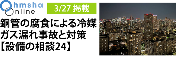 事例で解決!【設備の相談】シリーズ。第24回は、ビルマルチエアコンの冷媒銅管に発生した「蟻の巣状腐食」による冷媒漏れについて、発生原因と防止策を詳しく取り上げています。