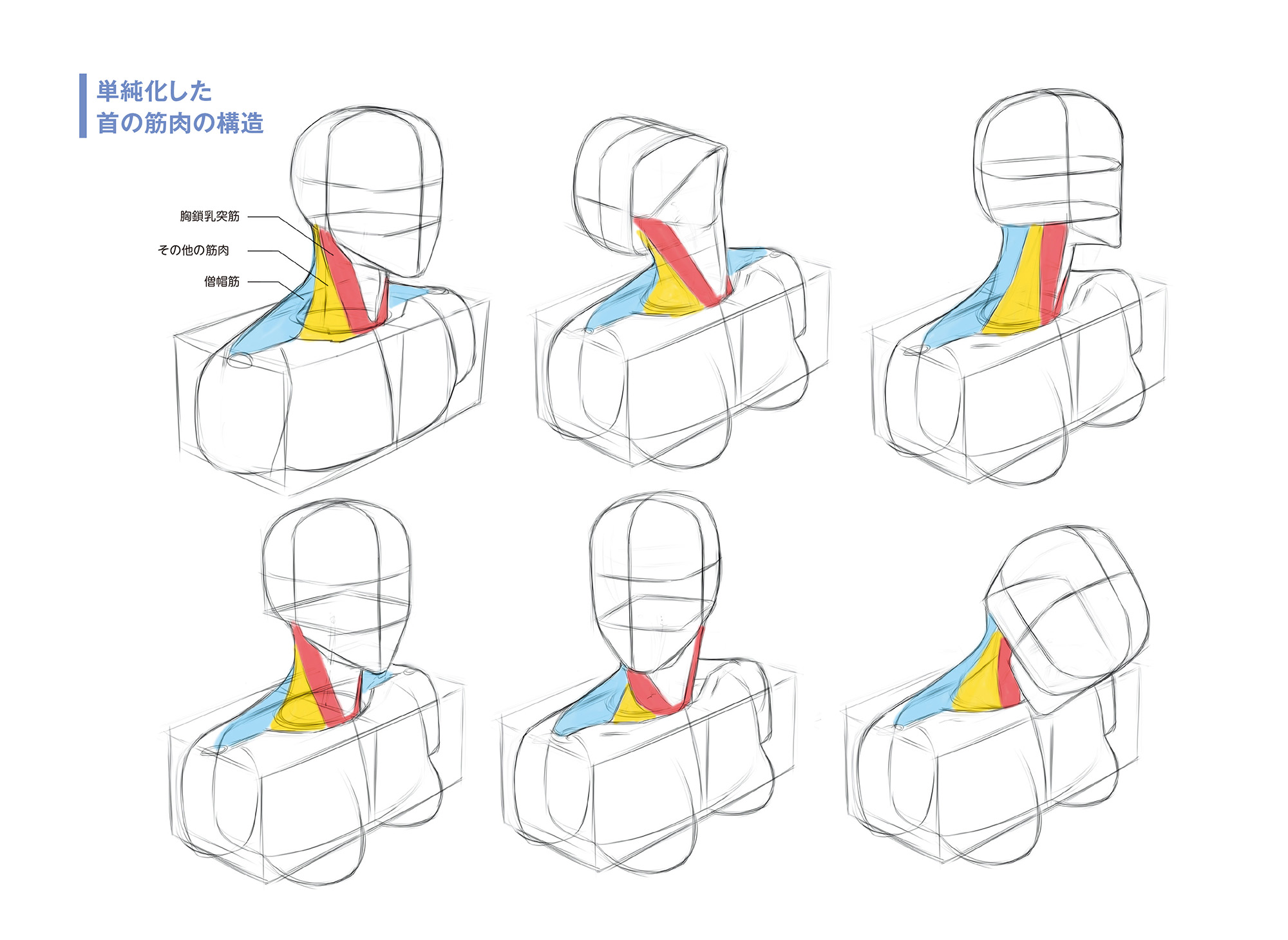 解剖学的な解説はポイントに留め、よりディティールが活きたドローイングを多数収録しました。ドローイング資料集としても役立つ内容です。