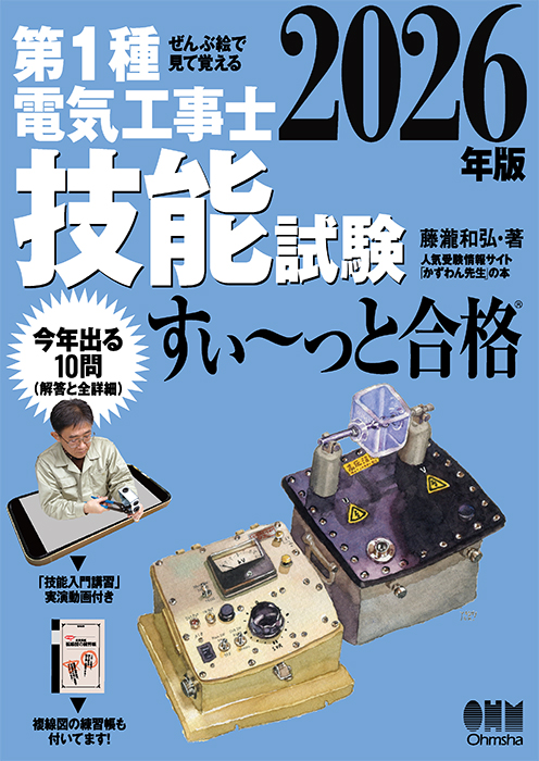 2026年度の技能試験に出題される公表候補問題の全想定解答と詳細説明を写真と図入りで丁寧に解説しました。合否にかかわるポイントを書き込んだ複線図と、カラー完成写真、完成実体配線図、さらに一般的な施工条件を想定した模擬試験用紙や練習に必要な材料の一覧表が付いているので、自習には最適です。また、独学で試験に挑戦するはじめての方でも、容易に理解できるよう、技能に必要な基本作業をスマホやパソコンで観られるQRコード付きて、一から丁寧に説明しています。本書は、すでに第二種の技能本で「簡単で分かりやすい」「作業が速い」と大評判の藤瀧和弘先生のやり方そのままですから、合否の判定にかかわる重要ポイントだけで無駄なことを覚える必要がなく、安心して練習に取りかかれます。