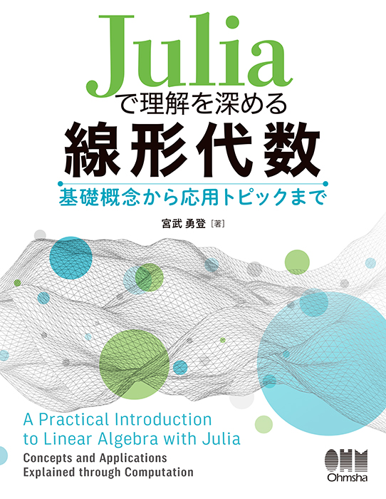本書は、Juliaを用いて線形代数が学べる参考書です。