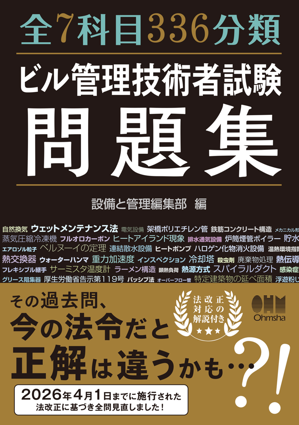 2022年4月発行の『全7科目354分類 ビル管理技術者試験問題集』の改題改訂版です。好評を博してきた「似ているが微妙に異なる」過去問を分類ごとに掲載するという基本構成はそのままに、問題収録対象を2015~2025年度の10年間に更新するとともに、出題傾向の変化に合わせ、分類キーワードも見直しました。