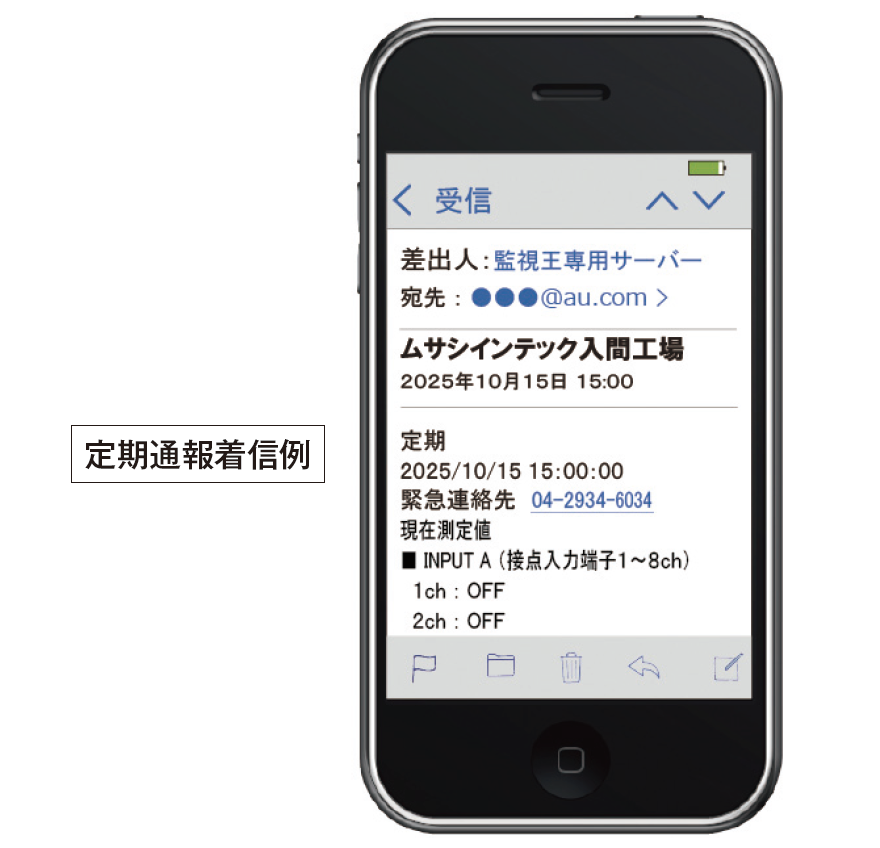 監視王シリーズのスタンダートタイプとして、多目的に使える接点入力を8ch、専用センサによる漏洩電流・温度変化を各4ch の計測・監視機能に加えて、通電・停電発生時の通報やテスト通信をスマートフォン・携帯電話等・パソコンへEメールで通報することが可能である。