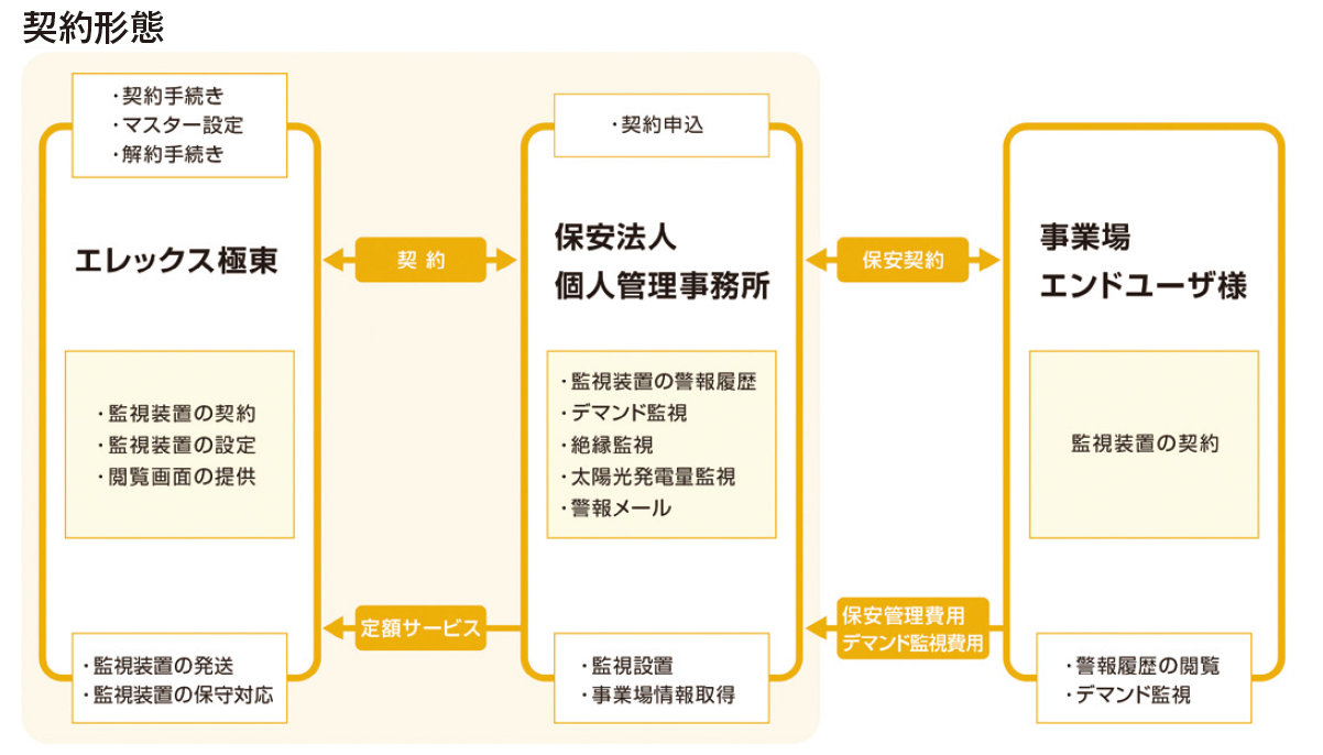 エレックス極東のIor 方式絶縁・デマンド監視装置TJ3-Gatewayは、かんたんにスマート保安を実現できる。 監視装置の導入にあたり、毎月定額でサービスを提出している為初期費用を抑えることができる。 クラウド型オペレーションシステム「AWS 遠方監視サービス」も費用に含んでいる。 ■機能 ① Ior 方式絶縁監視 ② 停復電監視 ③ 接点監視 ④ 太陽光発電設備の発電監視 ⑤ デマンド監視 ⑥ クラウドサービスの閲覧およびマスター設定 クラウドで情報管理する機能を兼ね揃えており、太陽光発電所の電力メータでデマンド監視することにより、いつでもどこでもスマートフォンで太陽光の発電状況を確認できる。 上記機能等を含め、優れたユーザーインターフェースにより、日々の保守・点検業務や、管理業務をスマート化できるのがエレックス極東のIor 方式絶縁・デマンド監視装置TJ3-Gateway である。